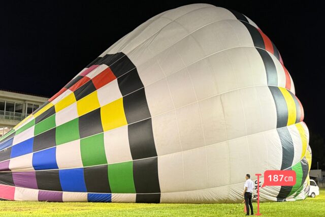 写真は膨らんでいる途中の気球です。