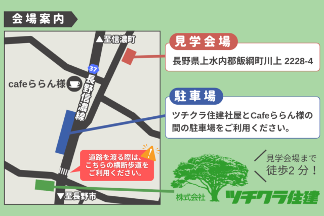 ※お車は会場前または株式会社ツチクラ住建の駐車場をお使いください。